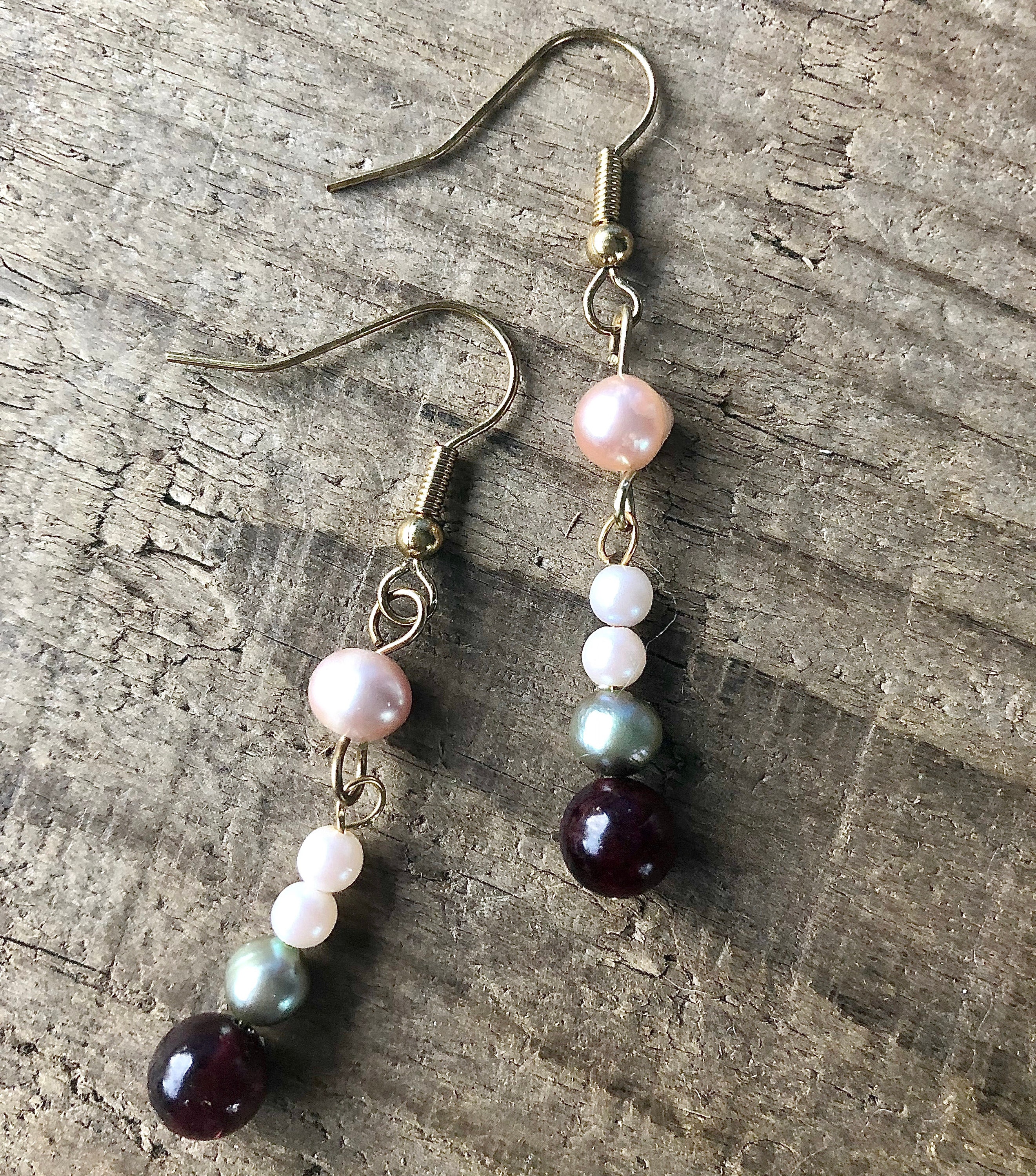 Indulge in the beauty of these one-of-a-kind 3 inch earrings featuring the perfect combination of Garnet and Freshwater Pearls. The deep red hue of the Garnet is rich and luxurious, and it pairs perfectly with the soft green and champagne tones of the Freshwater Pearls. The contrast in color and texture creates a refreshing and delightful design that is sure to turn heads. These earrings are versatile and can be dressed up for a night out or dressed down for a more casual look. They would make a glorious statement piece at the office party or stunning accessories at an afternoon dance recital. The earrings are carefully handcrafted with high-quality materials to create a unique and eye-catching design. The Garnet and Freshwater Pearls are expertly paired to create a harmonious balance between the two stones.